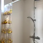 ישנו חדר אמבטיה פרטי עם שירותים נפרדים ומקלחת בדירה.